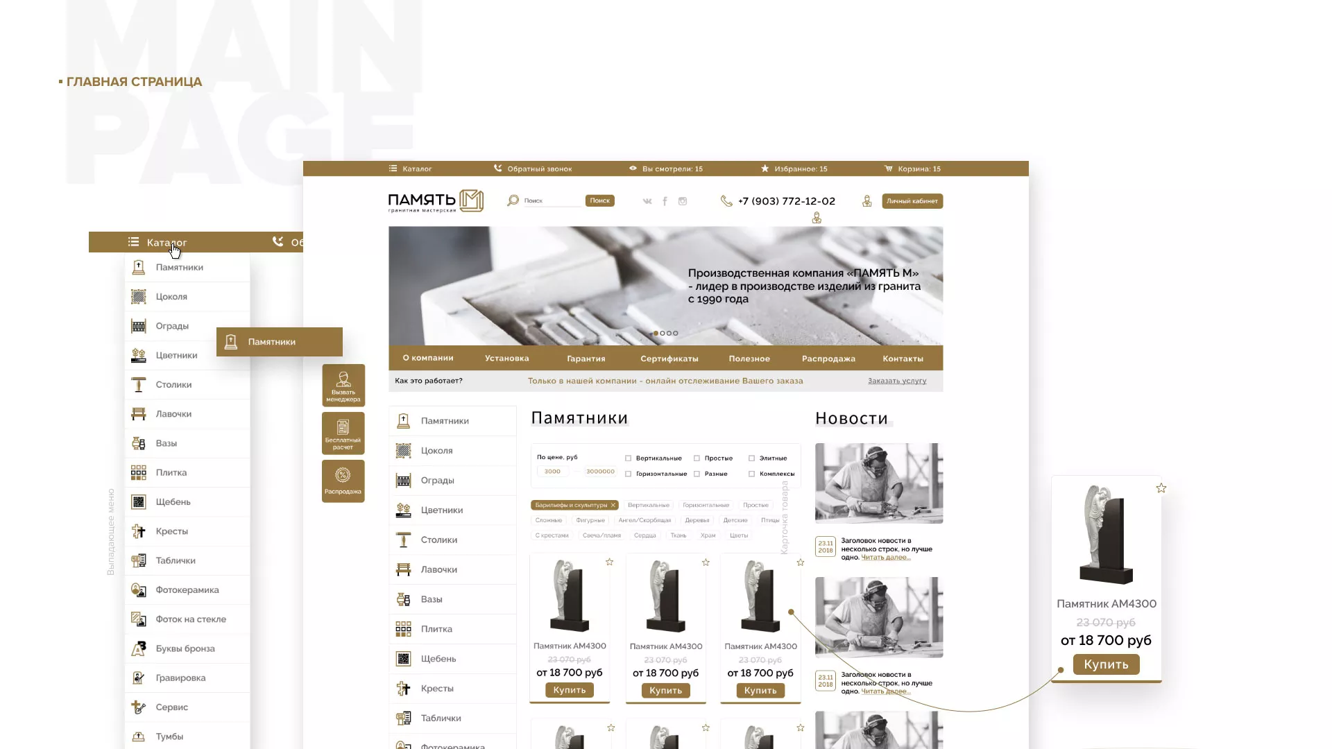 Разработка логотипа, фирменного стиля и сайта в Коркино для компании «Память-М». Компания является предприятием по изготовлению всех видов надгробных сооружений: памятников, цоколей на могилу, оградок, столов, лавочек, ваз, балясин, плитки, мемориальных комплексов. Компании «Память-М» изготавливает все виды мемориальных изделий на собственном производстве в Коркино.